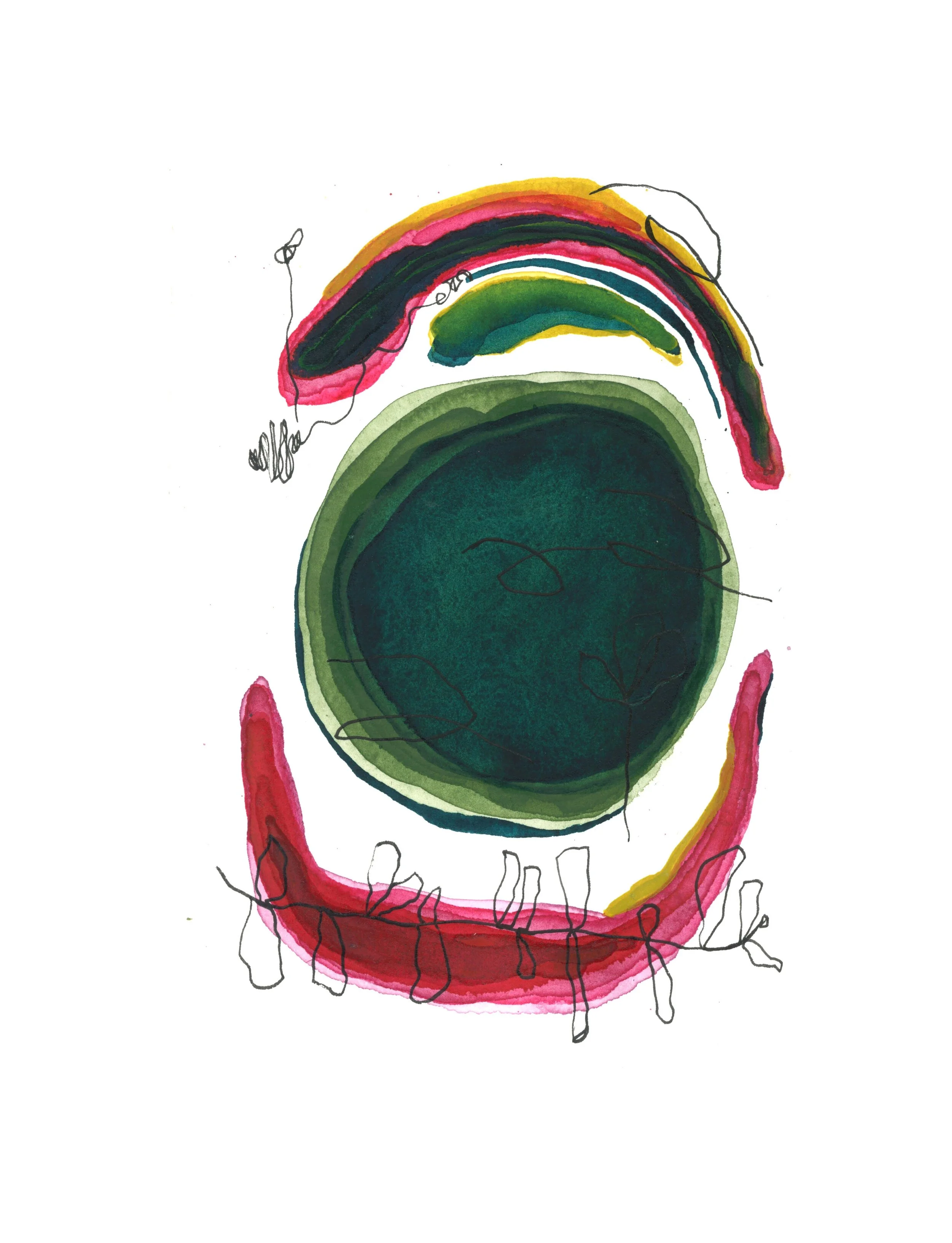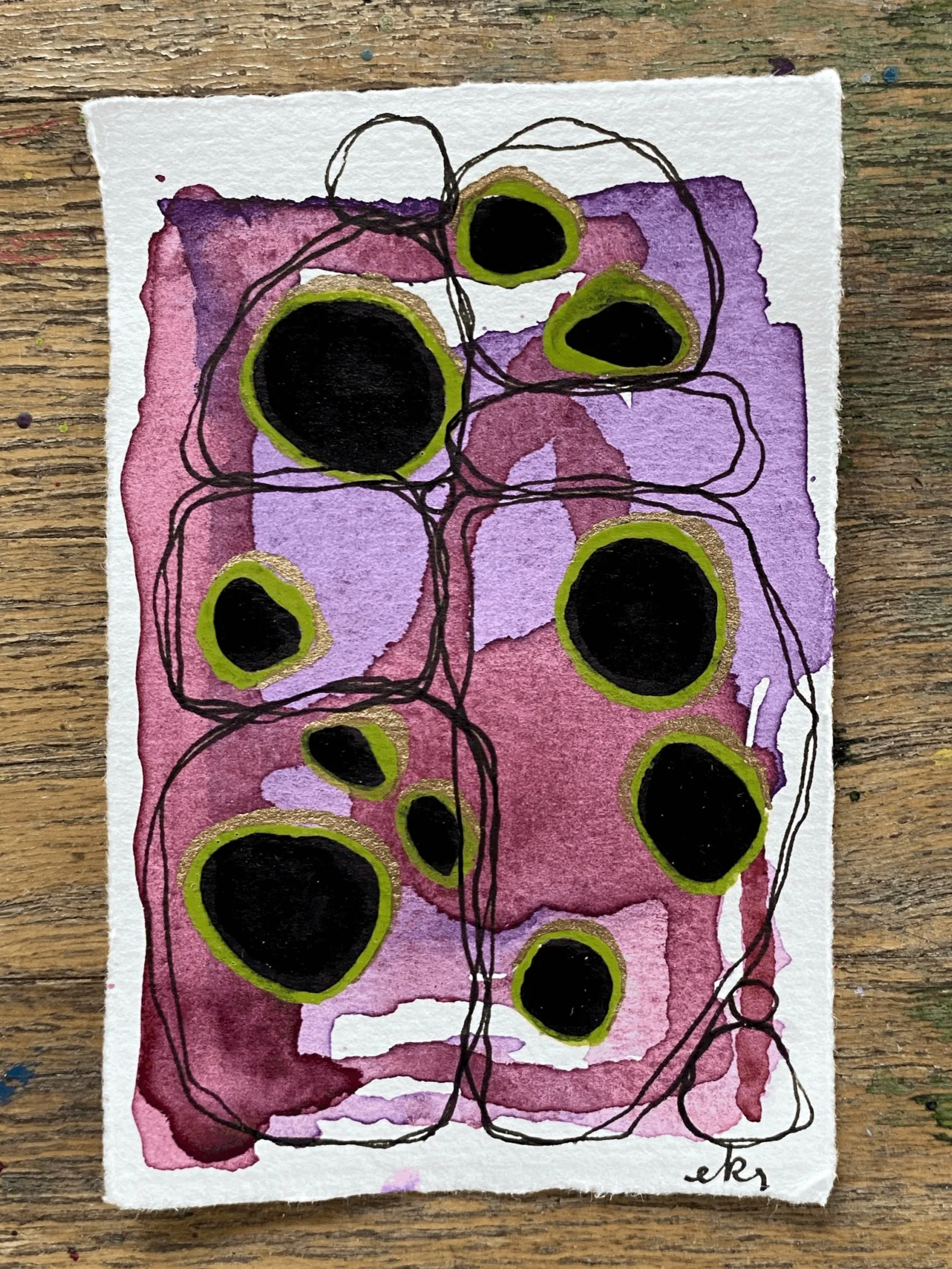 Marking My Way, also known as the flowers and cairns series, is a series of watercolor and ink paintings that explores the contrast and pairing of haphazard growth with intentionally built structure. Also known as the flowers and cairns series. Assorted sizes.
