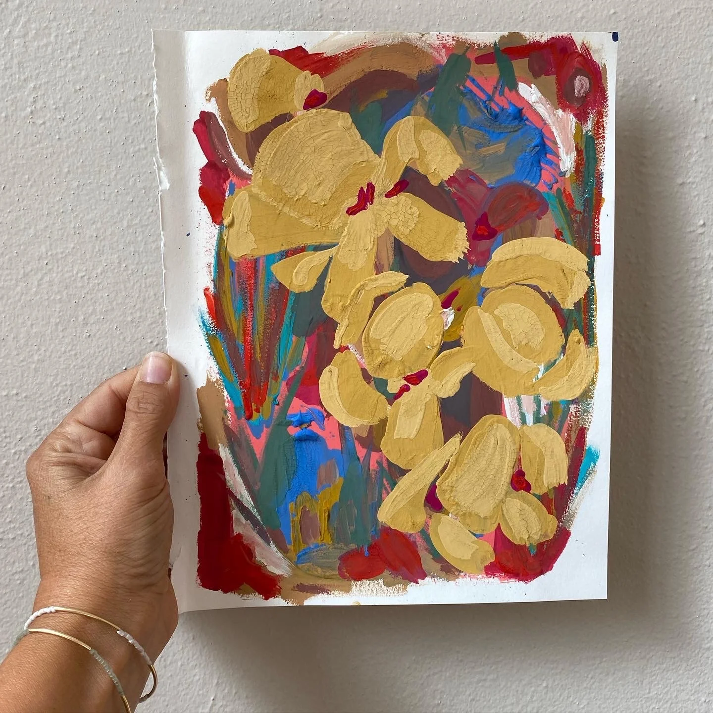 acrylic, gouache and oil pastel paintings on sketchbook pages - end of year sale for $25
